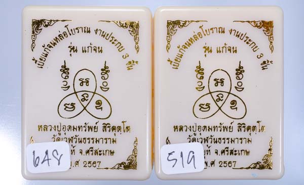 งานหล่อ ประกบ3 ชิ้น ข้างในมีผงงาช้างบด มวลสาร เขย่าดูมีมวลสาร สวยๆ หลวงปู่มหาศิลาร่วมเศก แบ่งเบาๆ ออฟชั่นเนื้อจะมีหลายๆ เนื้อหรือลงยาร่วมด้วย