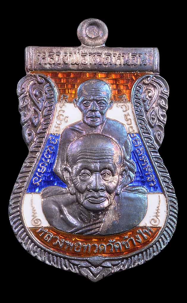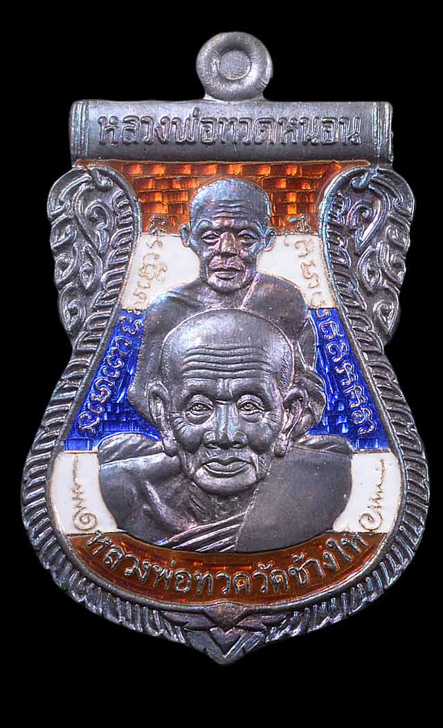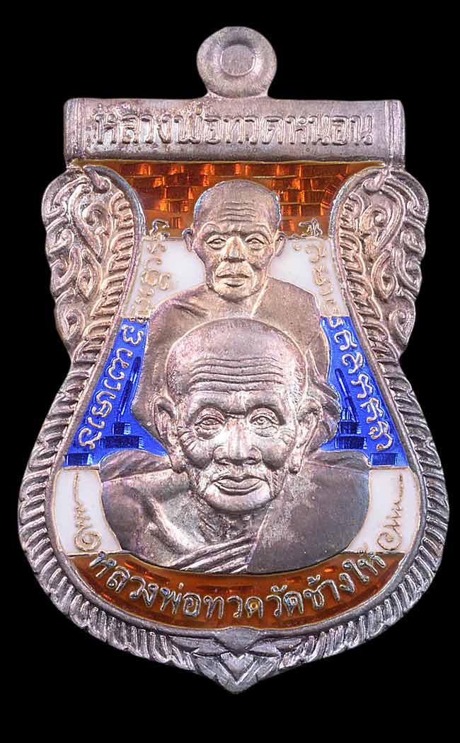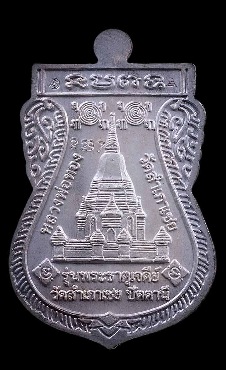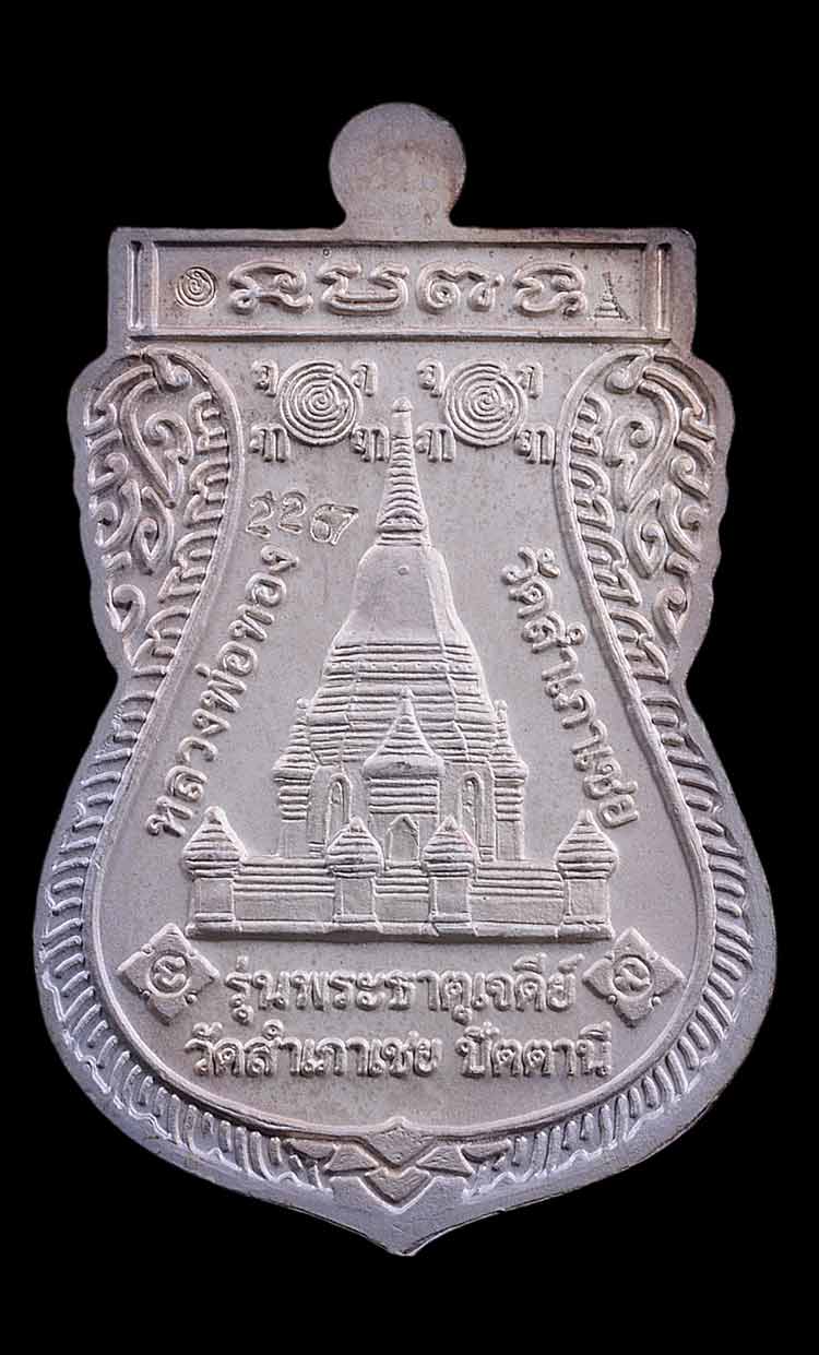 -เหรียญหลวงปู่ทวด อาจารย์ทอง วัดสำเภาเชย พิมพ์พุทธซ้อน รุ่นพระธาตุเจดีย์ เนื้อเงินลงยาลายธงชาติ ปี 2549 จ.ปัตตานี