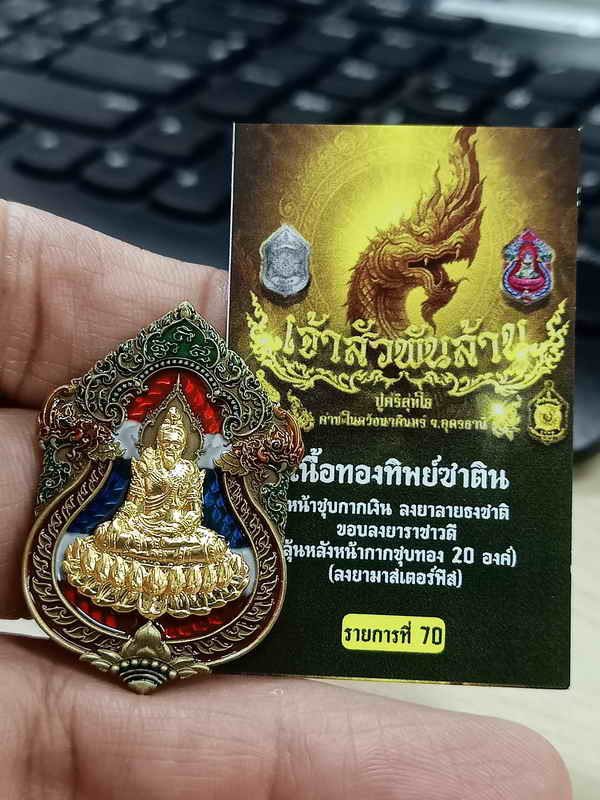 วัดใจ 100 เหรียญเจ้าสัวพันล้าน ปู่ศรีสุทโธ คำชะโนดวังนาคินทร์ อุดรธานี 2568 ทองทิพย์ซาติน ลงยาธงชาติ หน้ากากชุบทอง หมายเลข 888 สร้าง 20 กล่องเดิม |