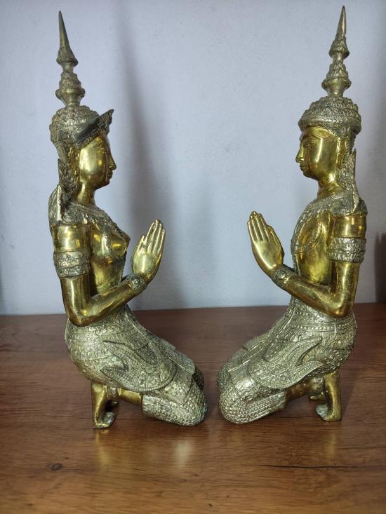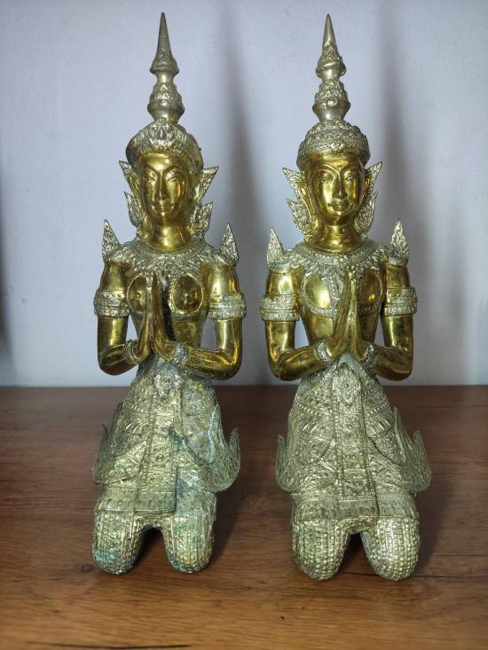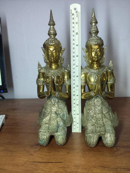 วัดใจต่ำกว่าทุนครับ เทวดาเทพพนมคู่ ( บุรุษเทพ - สตรีเทพ ) เนื้อทองเหลือง 2 กษัตริย์ หล่อตัน ขนาดความสูง 12 นิ้วครับ