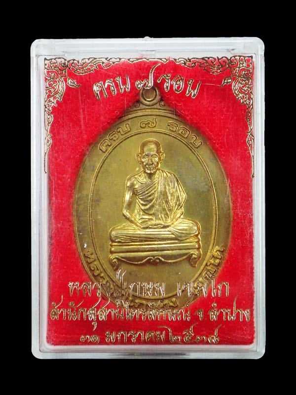###### เหรียญครบ 7 รอบ หลวงพ่อเกษม เขมโก ปี 2538 เนื้อฝาบาตร ตอกโค๊ต กล่องเดิม สวยเดิม #1 ######