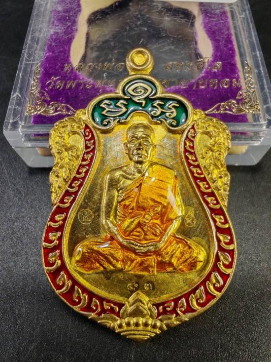 ชื่อพระเครื่อง วัดใจ 109 บาท รับพระ 1 กล่อง เหรียญเลื่อนสมณศักดิ์ หลวงพ่อทอง สุทธสีโล วัดพระพุทธบาทเขายายหอม รุ่นแรกบนเขา เนื้อทองทิพย์ลงยา จมูกฝรั่ง มีรอยจารคมๆจากหลวงพ่อทอง No. 4 3 เลขสองหลักหายากมากๆ กล่องเดิมๆ