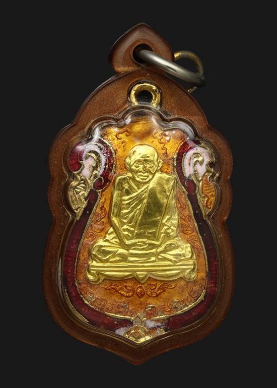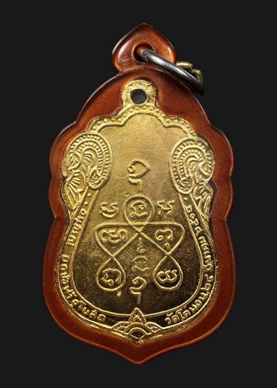 เหรียญหลวงปู่เอี่ยม วัดหนัง (วัดโคนอนสร้าง) หลังยันต์ห้า ปี 2514 เนื้อกะไหล่ทองลงยา หน้ากากทองคำ
