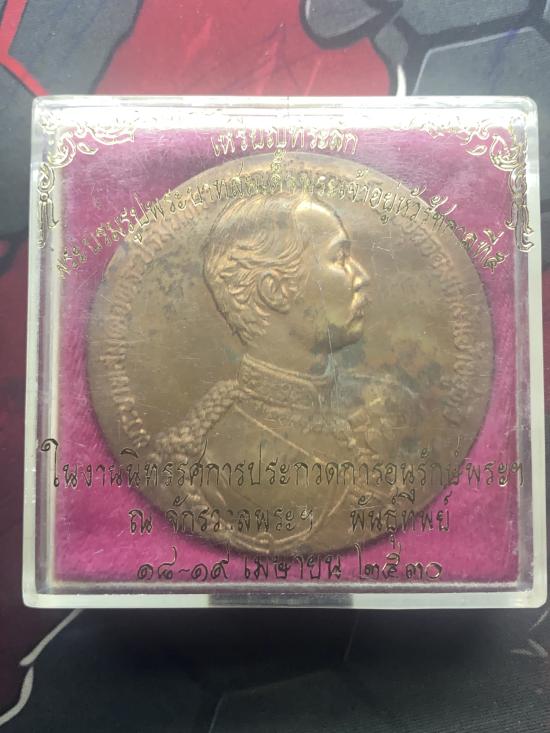 เหรียญรัชกาลที่ 5 ที่ระลึกในงานนิทรรศการประกวด การอนุรักษ์พร ะบูชา พระเครื่องและเหรียญคณาจารย์ ณ. จักรวาลพระฯพันธุ์ทิพย์ 18-19 เมษายน 30 เนื้อทองแดง หลวงปู่ดู่ วัดสะแก ปลุกเสก