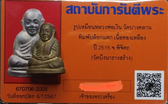 วัดใจ.....รูปเหมือนหลวงพ่อเงิน วัดบางคลาน พิมพ์บล็อกแตก เนื้อทองเหลือง ปี2515 จ.พิจิตร(วัดบึงนารางสร้าง) พร้อมบัตรรับรอง |