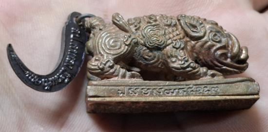 พญาหมูพลิกแผ่นดิน รุ่น 2 หลวงปู่กาหลงเขี้ยวแก้ว วัดเขาแหลม จ.สระแก้ว รุ่นครอบเศียรพระลักษณ์ ปี พ.ศ.2550 เนื้อนวโลหะขอมโบราณพันปี