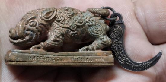 ชื่อพระเครื่อง พญาหมูพลิกแผ่นดิน รุ่น 2 หลวงปู่กาหลงเขี้ยวแก้ว วัดเขาแหลม จ.สระแก้ว รุ่นครอบเศียรพระลักษณ์ ปี พ.ศ.2550 เนื้อนวโลหะขอมโบราณพันปี