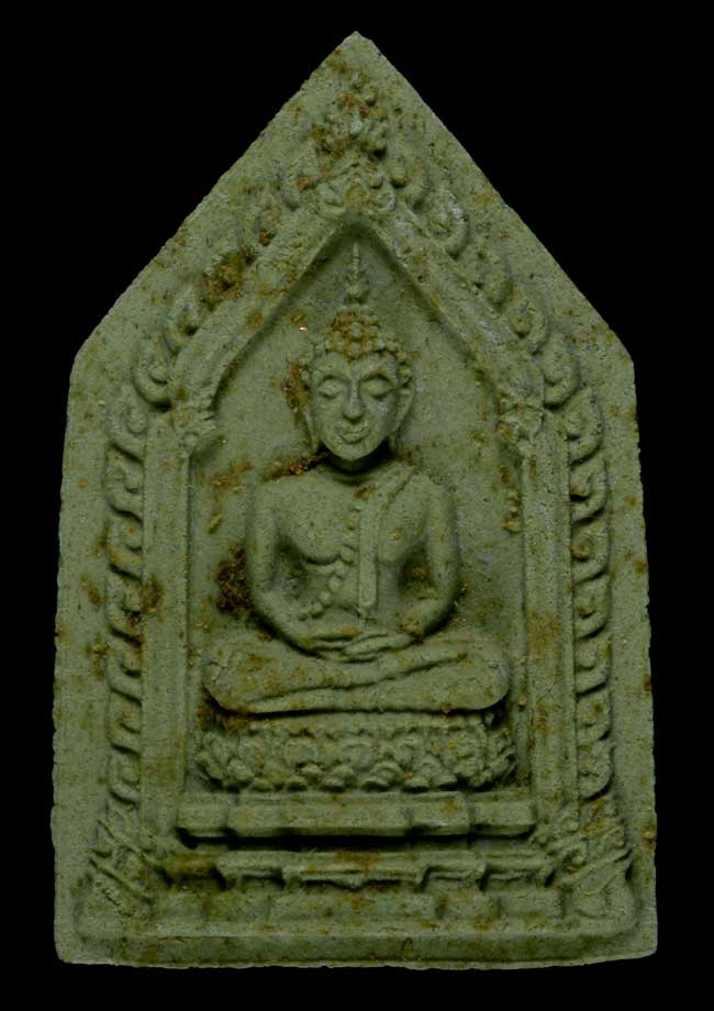พระพุทธสิหิง เนื้อเขียวพิมพ์เล็ก โรยผงตะไบทอง เกษา (สภาพคัดสวย)