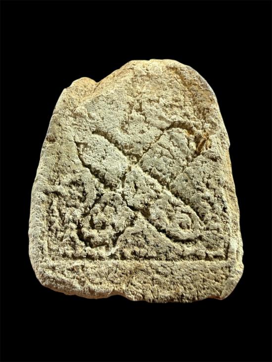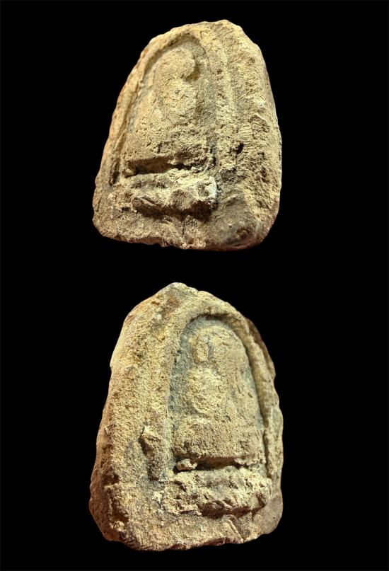 พระปิดตาเนื้อผง หลังยันต์กระบองไขว้ ไม่ทราบที่