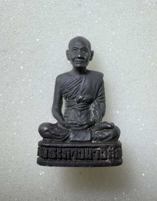 รูปหล่อรุ่นแรก หลวงพ่อจรัญ วัดอำพวัน สิงห์บุรี ปี31 ทองแดงรมดำ |