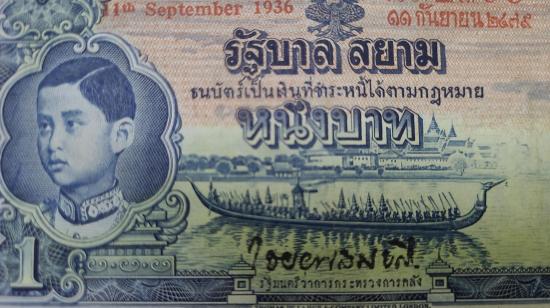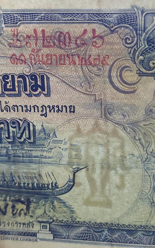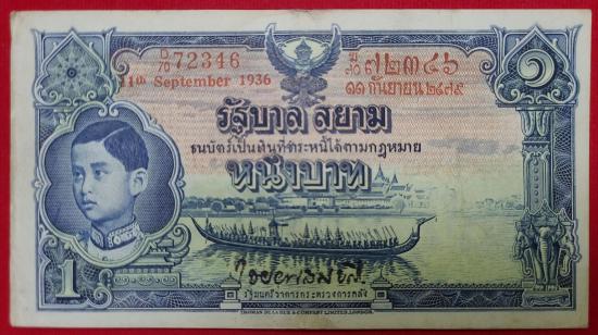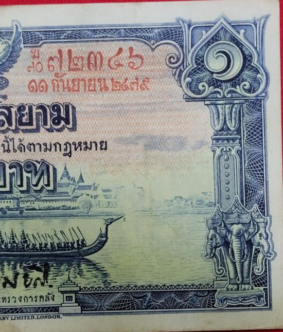ธนบัตร 1บาท โทมัส ร.8 เลขแดง พ.ศ. 2479 ลายเซ็น พระยาไชยยศสมบัติ