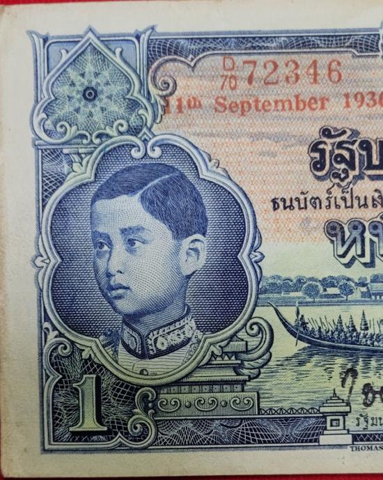 รายละเอียด ธนบัตร 1บาท โทมัส รัชกาลที่ 8 หมายเลข 70D 72346 - ๗0ฆ ๗๒๓๔๖ ลายเซ็น พระยา ไชยยศ สมบัติ พิมพ์เมื่อ 11 กันยายน 2479 สภาพสวยตามรูป