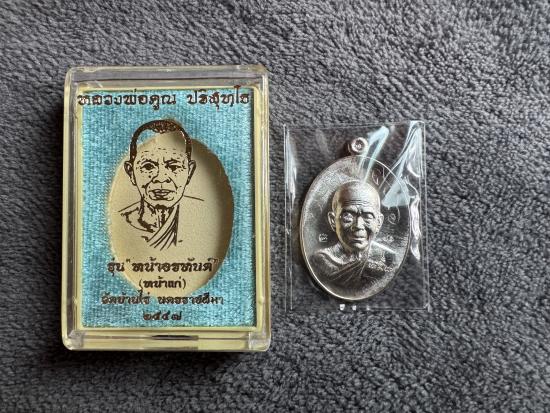 เหรียญหลวงพ่อคูณ ปริสุทฺโธ รุ่น หน้าอรหันต์ (หน้าแก่) ปี 57 เนื้อเงิน หมายเลข 71 พร้อมรอยจารหลวงพ่อทอง สุทฺธสีโล เนื้อเงินจัดสร้าง 99 เหรียญ |