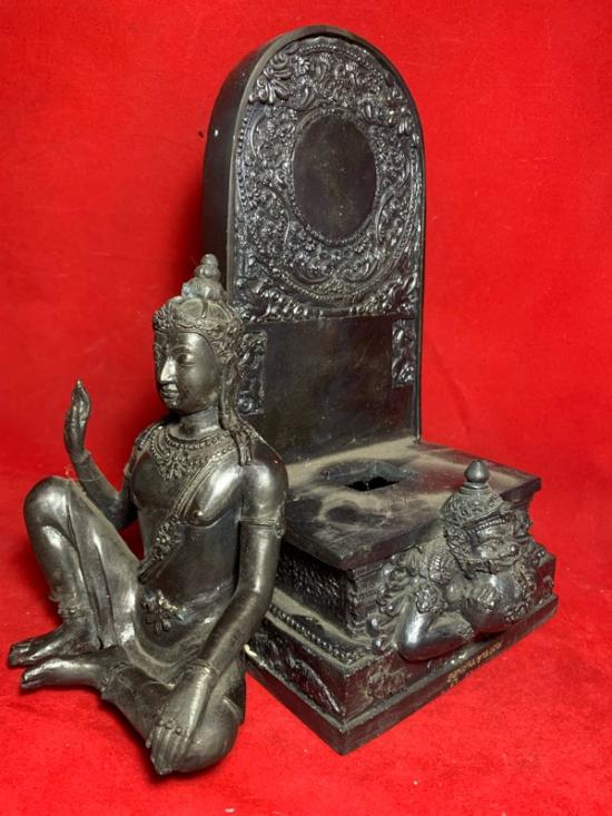พระบูชาองค์ท้าวจตุคามรามเทพ สร้างโดยวิทยาลัยช่างศิลป์ ปี 2551 (2 ถอด) หมายเลข 24 ฐานกว้าง 6 นิ้ว สูง ประมาณ 12 นิ้ว |