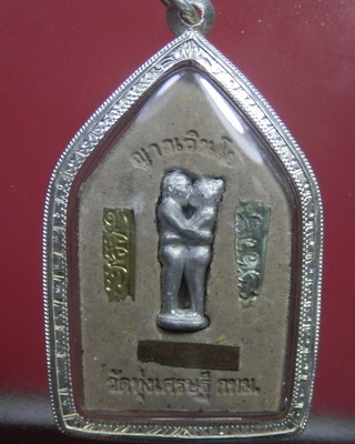 เคาะเดียว ขุนแผนมหาเสน่ห์ ไก่แก่แม่ปลาช่อน หลวงพ่อเณร วัดทุ่งเศรษฐี เลี่ยมเงินลงยา |