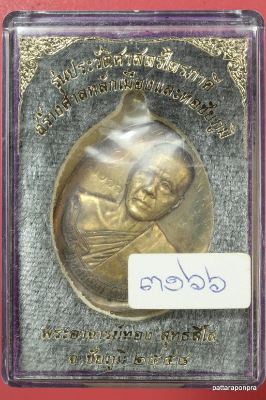เหรียญห่วงเชื่อม หลวงพ่อทอง รุ่นประวัติศาสตร์ไตรภาคี ปี 2558 เนื้อกะไหล่ทองมีจาร หมายเลข 3166 |