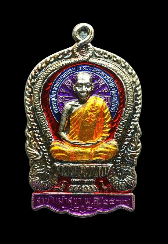 เหรียญพิมพ์นั่งพาน รุ่น 1 หลวงพ่อสวัสดิ์ ปุณณสีโล เนื้อเงินลงยาสีม่วง หมายเลข 14 วัดใจเคาะแรก!!! |