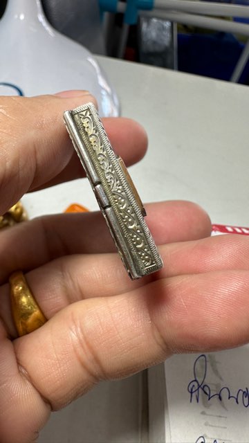 ตลับเงินงานเก่า ปิดฝาหลังแบบเดือย สวยคลาสสิค หน้าสิงห์ไม่แน่ใจว่านากหรือทองแดง(ขายเป็นทองแดงละกันครับ) ขนาดหน้าจอสูง 3.8ซ.ม.กว้าง2.8ซ.ม.ด้านข้างวัดข้างใน5มิลล์ ดองพิจารณาดูครับ |