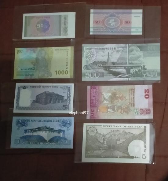 วัดใจAAA ธนบัตรต่างประเทศ จำนวน7ประเทศรวม8ฉบับใช้หมุนเวียนในระบบเงินจริงมีลายน้ำและเลขฉบับกำกับสวยทุกใบ ไม่ผ่านการใช้ พร้อมหนังสือสอดเก็บ จุได้ 32ฉบับ(ให้พร้อมหนังสือ)
