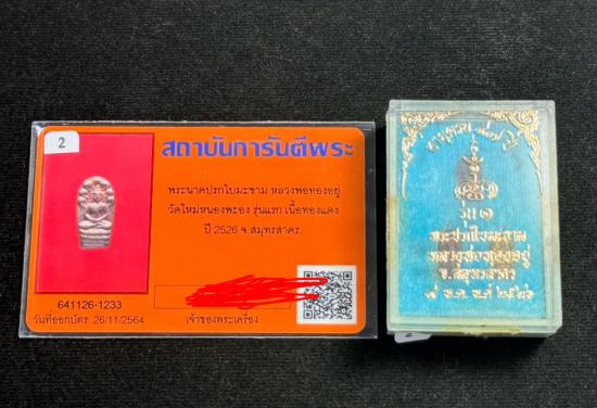 คาะเดียวแดง** พระปรกมะขาม รุ่นแรก หลวงพ่อทองอยู่ วัดหนองพระองค์ ปี 2526 เนื้อนวะโลหะ ฝาบาตร ทองแดง ...หายาก+บัตร G-pra เนื้อทองแดง 1 ใบ (พระชุดนี้ อ.เทพ สารีบุตร เจ้าพิธี) |