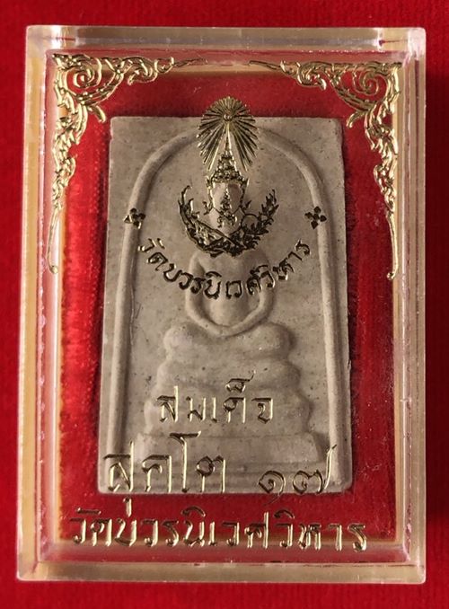 พระสมเด็จสุคโต วัดบวรนิเวศฯ พิมพ์ใหญ่ ( มีเกศา ) เนื้อผง ปี 2517 สวยๆ มาพร้อมกล่องครับ