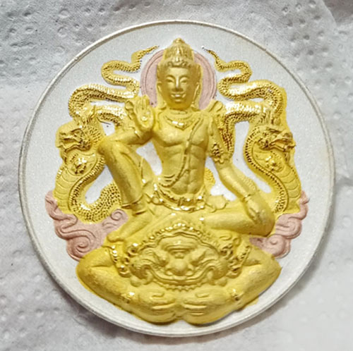-ประกอบพิธีครั้งที่ 1 พิธีเททองนำฤกษ์ ณ วัดดอนกระต่ายทอง โดยสมเด็จพระมหาเมธีราจารย์ วัดชนะสงคราม กดพิมพ์นำฤกษ์โดย