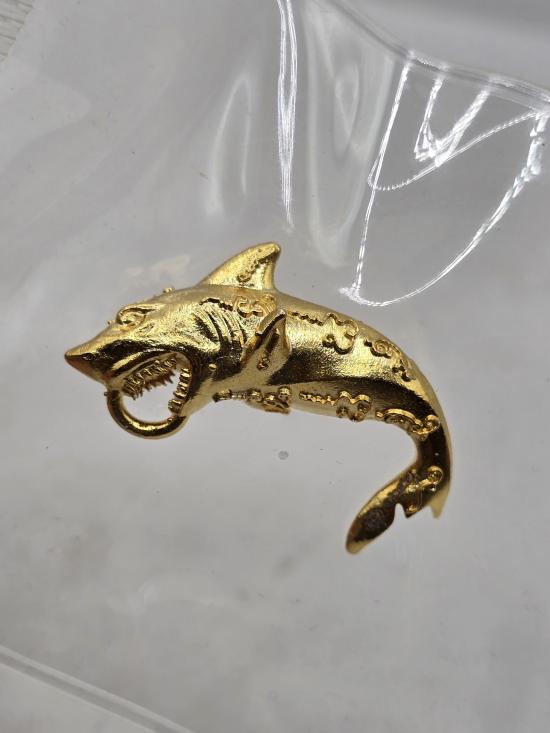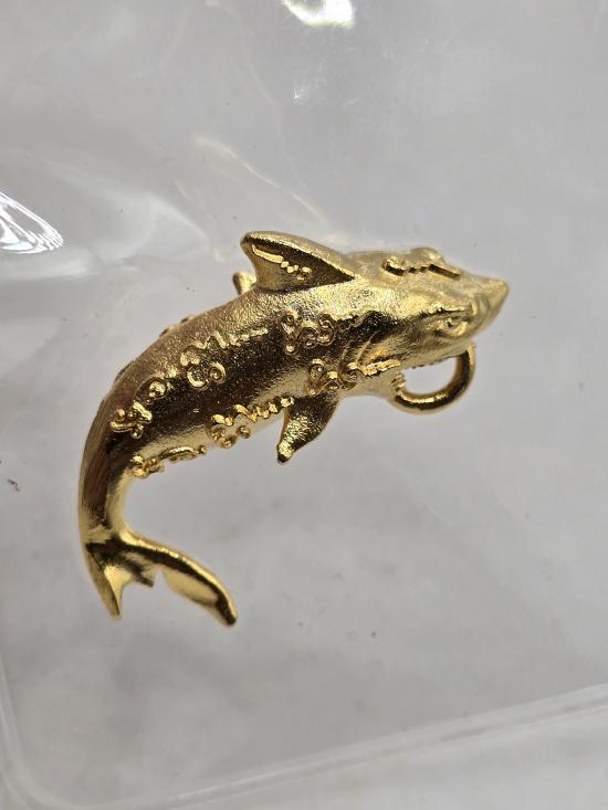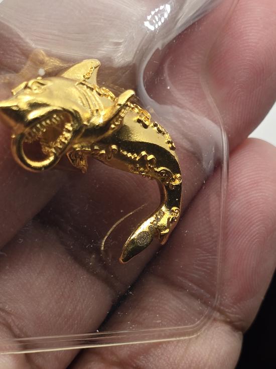 ฉลามเรียกทรัพย์ หลวงปู่มหาศิลา หลวงปู่ศิลา สิริจันโท ธรรมอุทยาน วัดพระธาตุหมื่นหิน จ.กาฬสินธุ์ เนื้อกะไหล่ทอง ชุบทองคำแท้ เลข ๑๖๔๗ ไม่มีกล่องเดิม
