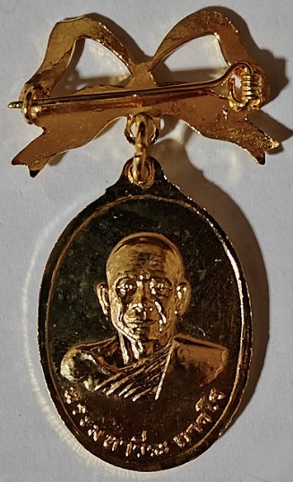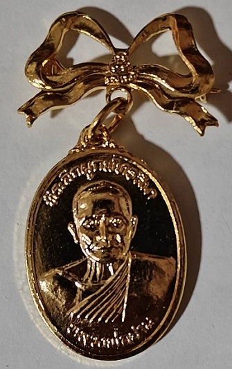 เหรียญที่ระลึกงานผูกพัทธสีมา ชุบกะไหล่ทอง หลวงพ่อปาน - หลวงพ ่อฤาษีลิงดำ วัดท่าซุง ปี2520 มีโบว์มีเข็มกลัด |