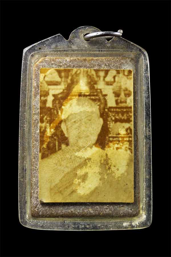 วัดใจเคาะเดียวแดง พระสมเด็จพระอาจารย์ฝั้น หลังรูปถ่าย สกลนคร เลี่ยมเก่า