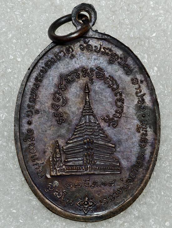 เหรียญครูบาแก่น สุมโน ออกวัดประตูป่อง ปลุกเสกโดยหลวงพ่อเกษม เขมโก ในปีพ.ศ2518 จัดสร้างเพื่อสมทบทุนในการบูรณะพระบรมธาตุ วัดประตูป่อง จังหวัดลำปาง