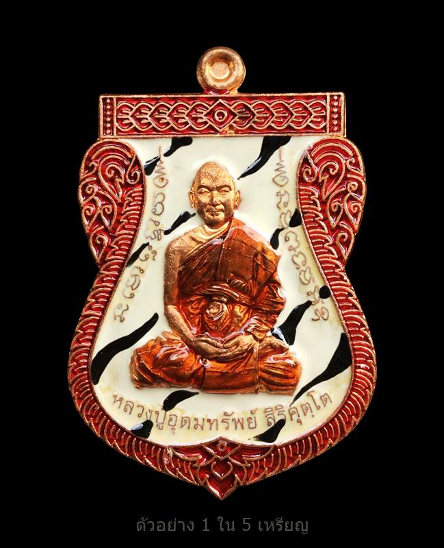 +!!เคาะเดียวllดง ตลอดสาย!!+ (รับ 5 เหรียญ) เหรียญเสมาสร้างศาลา รุ่นเลื่อนฐานะ หลวงปู่อุดมทรัพย์ วัดเวฬุวันธรรมมาราม จ.ศรีสะเกษ ปี63 เนื้อทองแดงลงยาลายเสือ เลขโค้ดตามรูปไม่มีกล่องครับ