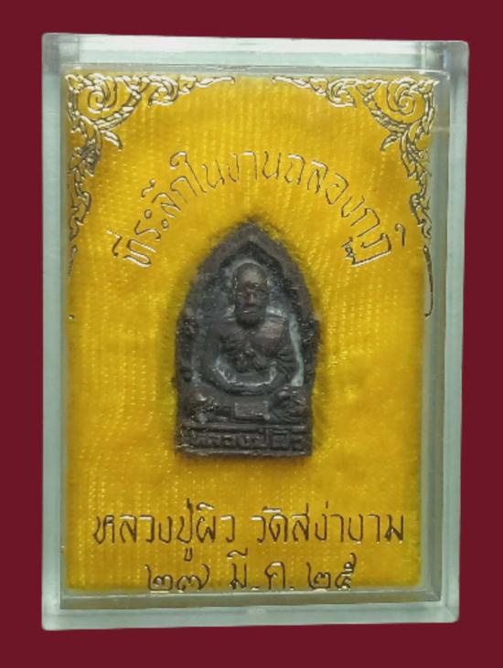 รูปเหมือนหล่อฉีด หลวงพ่อผิว วัดสง่างาม ปราจีนบุรี ปี 2525 เนื้อนวะโลหะ กล่องเดิม สวยครับ |