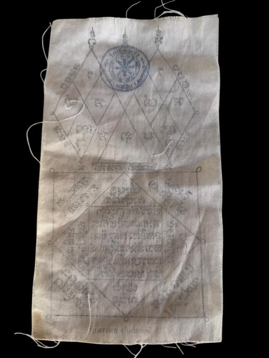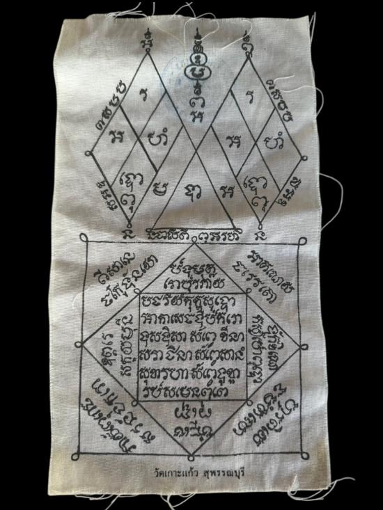 P59 ผ้ายันต์เก่า ลายสวย เข้มขลัง วัดเกาะแก้ว สุพรรณบุรี (เคาะเดียวแดง) |