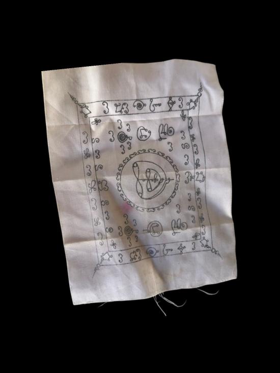 ผ้ายันต์เก่าไม่ทราบที่ ลายเส้นอักขระโบราณเต็มผืน เขียนมือคม ๆ ดูง่าย เนื้อผ้าเก่าเดิมธรรมชาติ เหมาะบูชาเสริมเมตตามหานิยม ค้าขายเรียกทรัพย์ กันภัยเวลาเดินทาง พกติดตัวหรือใส่กรอบแขวนร้านก็ขึ้น ผืนแบบนี้หายาก ของเก่าบ้าน ๆแต่พลังงานดีมาก เก็บเดิม ๆ ไม่ผ่านการใช้งาน (เคาะเดียวแดง) |