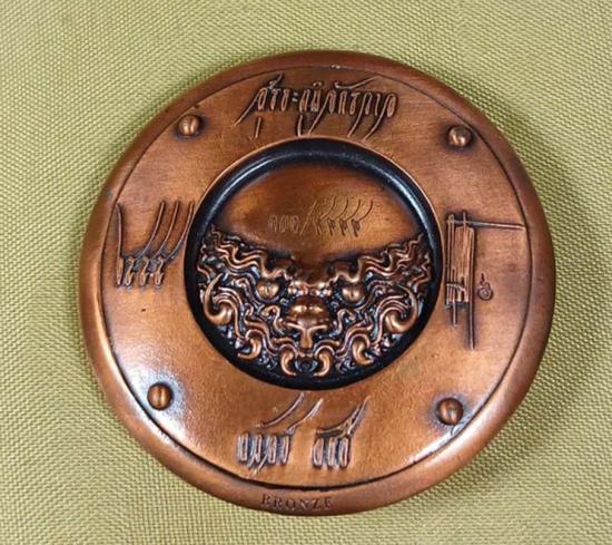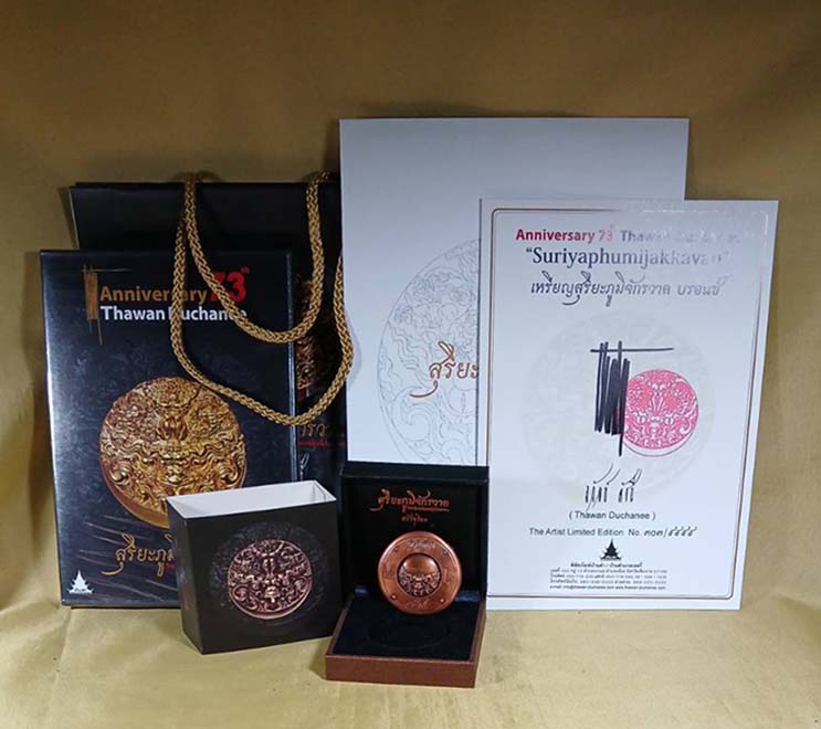 หรียญสุริยะภูมิจักรวาลผลงานอาจารย์ถวัลย์ ดัชนี เนื้อ บรอนซ์ อุปกรณ์ครบ เลข 3 หลัก