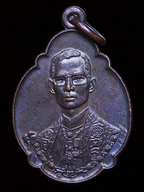 รายละเอียด เหรียญในหลวง ร.9 พระบรมราชสมภพครบ 4รอบ ปี2518 เนื้อทองแดงรมดำ (บล็อกเกศา 3 เส้น)