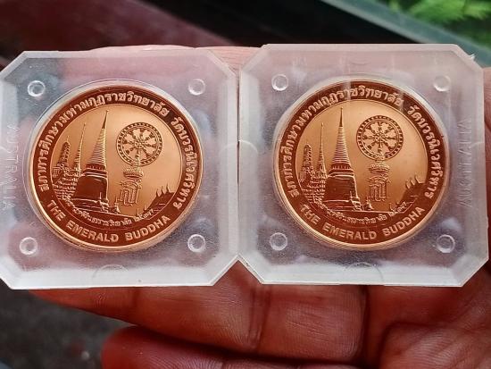 เหรียญ.เพิร์ธ ออสเตเรีย พระแก้วมรกต (2 เหรียญ) วัดบวรนิเวศ วิหาร ปี 2537 +กล่องเดิม พิธีใหญ่ เกจิย์ ดังร่วมเสก เช่น 1-ลพ.แพ พิกุลทอง 2-ลพ.เปิ่น วัดบางพระ 3- ลป.คำพัน 4-ลพ.ยิด หนองจอก 5-ลป.ทิม วัดพระขา |