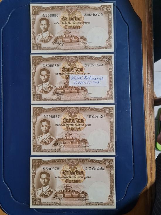 ธนบัตร 10 บาท โทมัส แบบ 9 จำนวน 4 ใบ จากแหนบเดียวกัน เลขเรียง 2 ใบ สุดสวย เคาะเดียวค่าส่ง |
