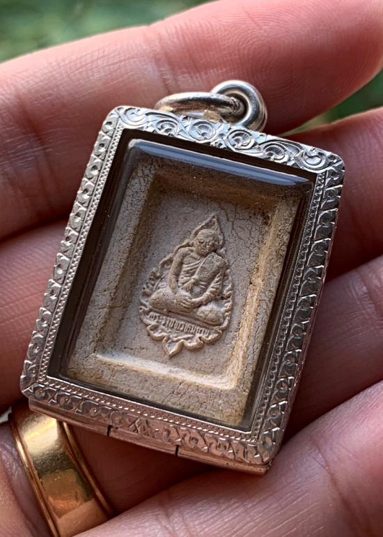 พระคำข้าว รุ่นสอง พิมพ์พระบาทขีด หลวงพ่อฤาษีลิงดำ วัดท่าซุง จ.อุทัยธานี เลี่ยมพร้อมตลับเงินสวยเดิมๆ