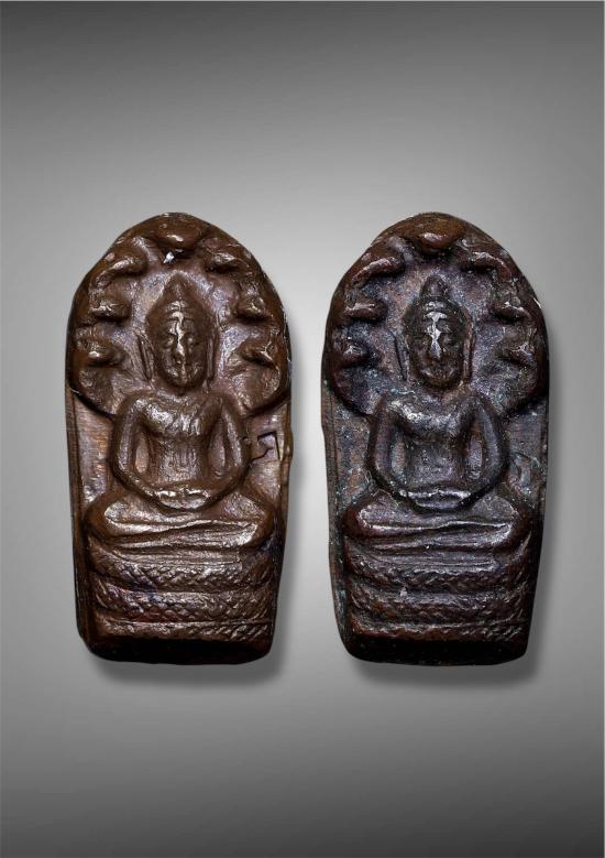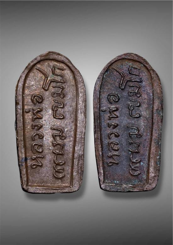 พระปรกใบมะขาม รุ่นแรก (หลังลายเซนต์) ยกคู่ 2 องค์ ปี 2517 เนื้อทองแดง หลวงพ่อเกษม เขมโก เคาะเดียวแดง!!