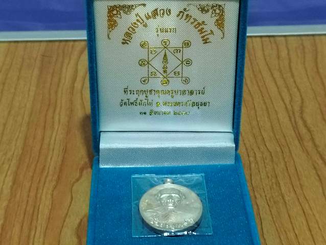 วัดใจ เหรียญรุ่นเเรก เนื้อเงิน หมายเลข 68 หลวงปุ่เเสวง วัดโพธิ์ผักไห่ จังหวัดพระนครศรีอยุธยา ปี 2557