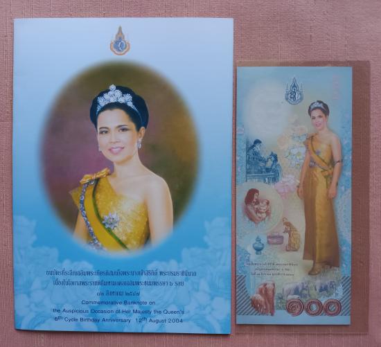ธนบัตรที่ระลึก 100 บาท(แนวตั้ง) เฉลิมพระเกียรติสมเด็จพระนางเจ้าสิริกิติ์ พระบรมราชินีนารถ มหามงคลเฉลิมพระชนมพรรษา 6 รอบ ไม่ผ่านใช้ จำนวน 2 ใบ
