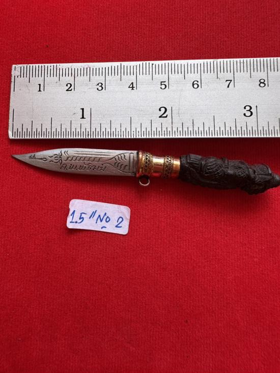 มีดหมอสาริการุ่นสุดท้าย หลวงพ่อพัฒน์ วัดห้วยด้วน ปี 2566 ขนาด 1.5 นิ้วใบมีดลายเสมาเต็มใบ กลั่นไม้มะค่า ด้ามแกะท้าวเวสสุวรรณ |