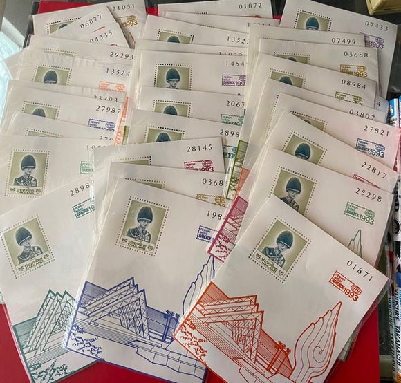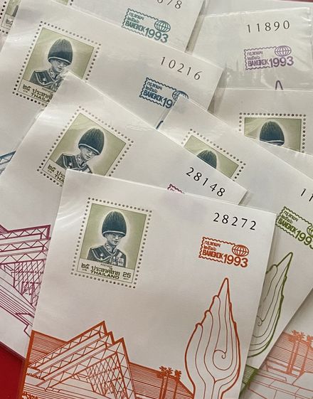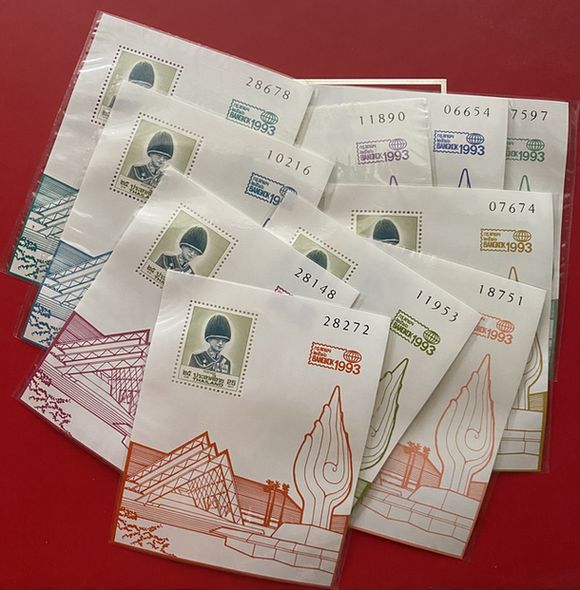 เคาะเดียว...แสตมป์ชีทในหลวงรัชกาลที่ 9 ที่ระลึกชุดงานแสดงตราไปรษณียากรโลก ปี 2536 ครบชุด 10 สีเลขไม่ซ้ำ 4 ชุด รวม 40 ดวง ราคาหน้าดวงๆละ 25 บาท (8) |