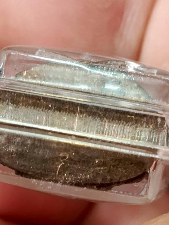พระกริ่ง หลวงพ่อเฮ็น วัดดอนทอง รุ่นแรก ปี37 [ เนื้อนวะโลหะ ] ตอก3 โค๊ต มีจานย์ พร้อมเลี่ยมพาสติกกันน้ำอย่างดี หายาก สภาพสวยที่สุด กล่องเดิมๆ |