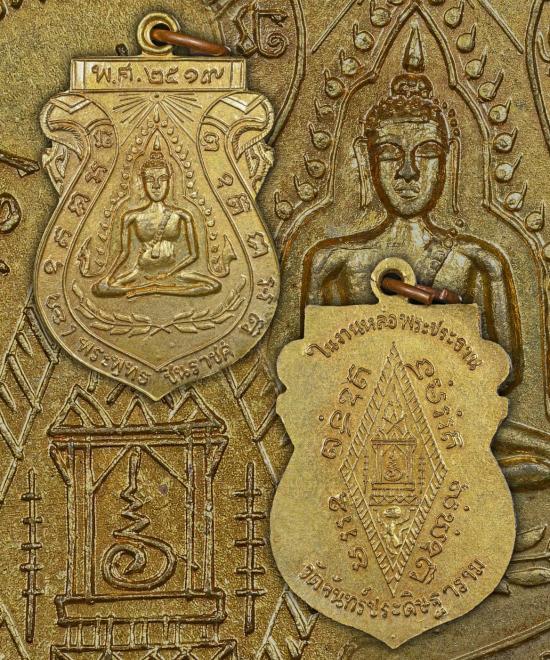 หรียญพระพุทธชินราช วัดจันทร์ประดิษฐาราม เนื้อทองแดงกะไหล่ทองปี2519 จ.กรุงเทพฯ |