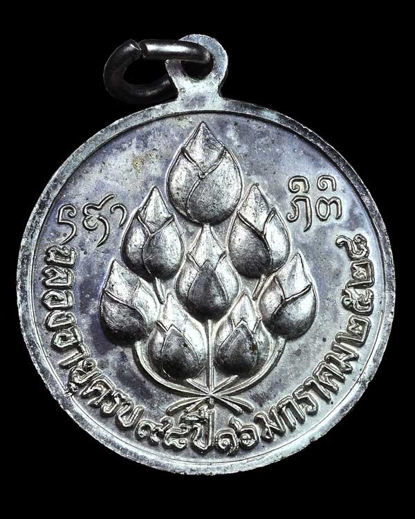 เหรียญหลังดอกบัว หลวงปู่แหวน รุ่นฉลองอายุครบ 98 ปี พิมพ์ใหญ่ เนื้อเงิน ปี28