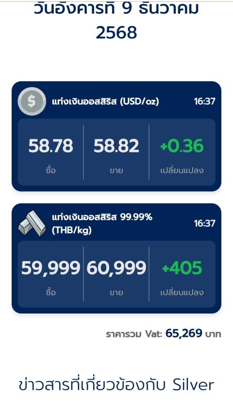 **ราคาล่าสุดรวม Vat. กิโลละ 64500 บ. ตกกรัมละ 64 บ.