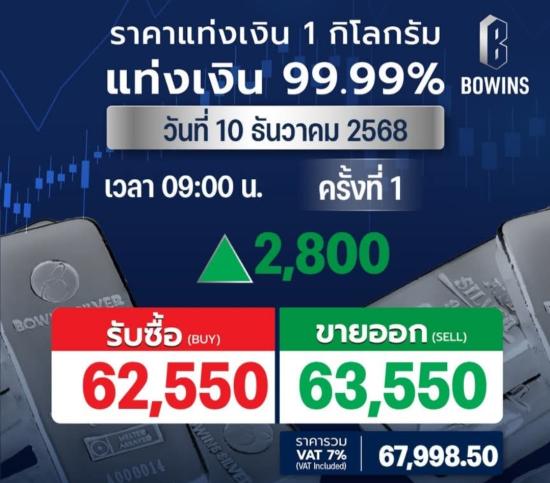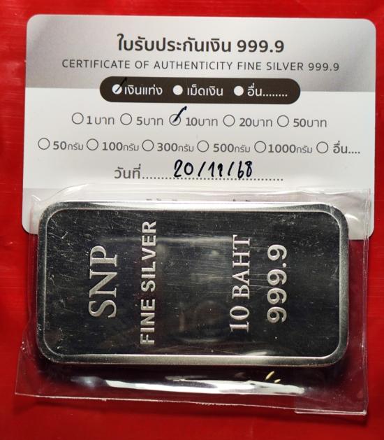 เงินแท่งแท้ 999.9 % น้ำหนัก 10 บาท พร้อมบัตรรับประกัน ตั้งแดงเบาๆ *1 |