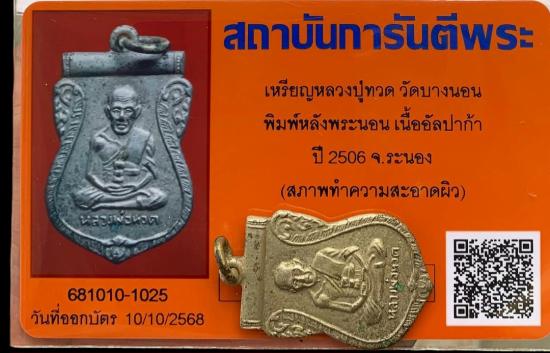 เหรียญหลวงปู่ทวด-หลังพระนอน วัดบางนอน ปี 06 เนื้ออัลปาก้าเปลือย สภาพทำความสะอาดผิว จมูกโด่งยังสวยคม พร้อมบัตรรับประกันพระแท้ |